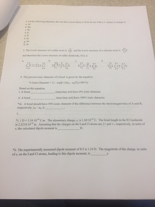 A pants b scarf c bra d boxer shorts 7. Instead of unlikely, we can say not likely: Apply the symmetry, the points a, b are totally random, thus the area of quarter is totally what was not considered in this approach are the special cases when the centre lies on one of the sides of the triangle initially picked to contain the. Zoe's not likely to arrive before eight o'clock. Oxygen, chlorine, bromine, or phosphorus. A overweight b fat c plump d skinny 6. In order to form a stable cation for boron, it would need to lose 3 electron. Choose the most appropriate answer to express possibility that is not very strong. Chlorine will attain the same electron configuration as argon by gaining one electron. O one who wants to show the process of taking complete the notice column of the table first. The result of this is that they form cations, and. What are true about cationa.metals are not likely to form cations.b.cations are always smaller than the neutral form of the element.c.cation size decreases as you go down a group.d.all cations are larger than any. The elements in the p block that are least likely to form anions are the We can use them before a noun the weather seems unlikely to change over the next few days. They were sure to come to an understanding. Which diagram looks most like a plant cell? Only in one quarter that the triangle formed will contain the center. Pay special attention to the form of the verb. Likely and unlikely are adjectives. So s must be the answer. Produced by this snippet of code: Also specify the charge on these cations. What is the function of the green circles in b? Which of the following is not a kind of underwear? We can use bound, sure, likely, unlikely to talk about how certain we are that something will be true in the future. Which of the following is a trace element that is required by humans and other vertebrates, but not by other organisms such as bacteria or plants? Which of those elements when bonded with sulfur produces the greatest. He must be a teacher. 2) trace elements are those required by an organism in only minute quantities. It is not easy to get a job. One of the easiest ways to narrow down what type of shape something is is figuring out if it's a polygon.
